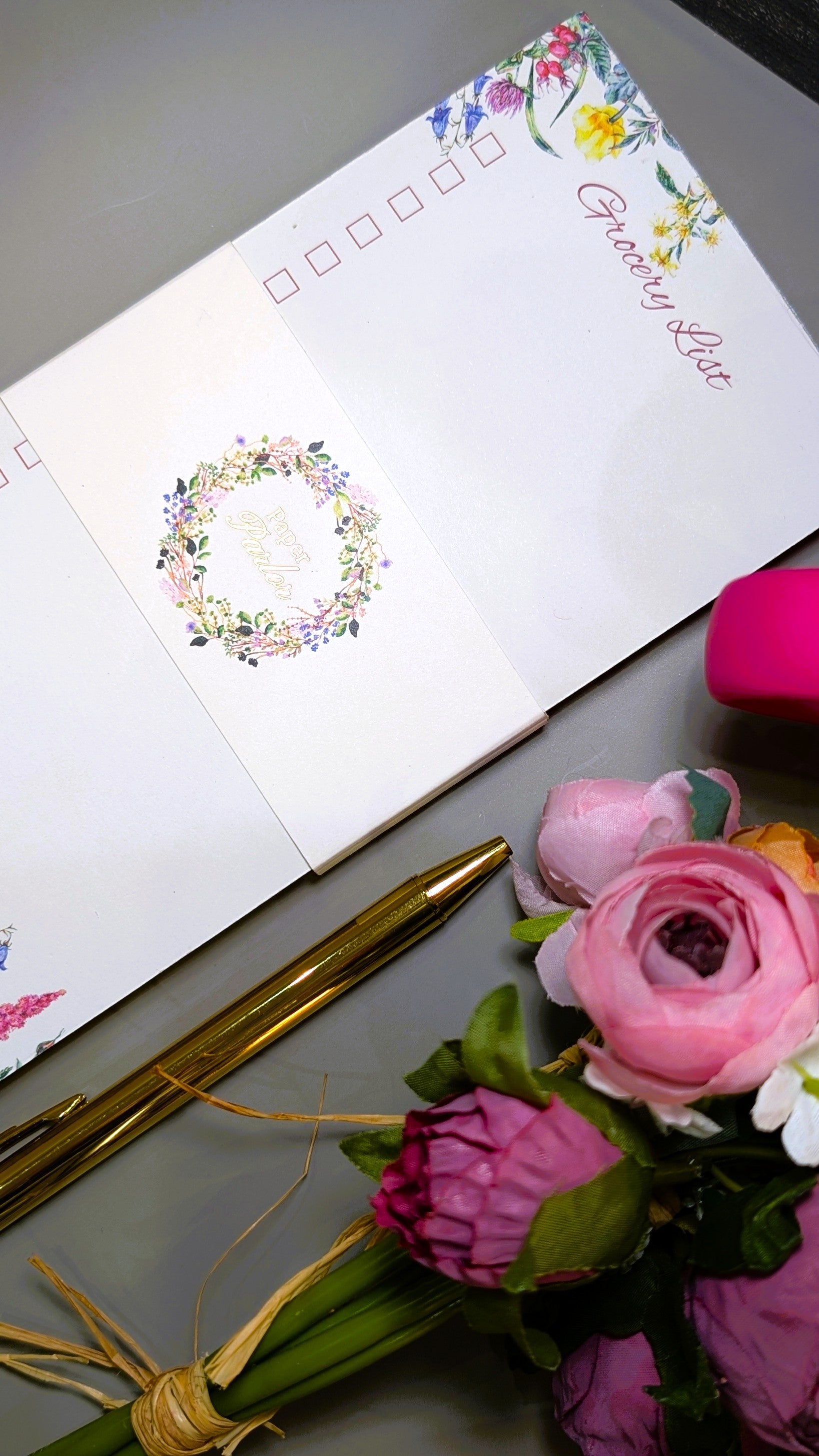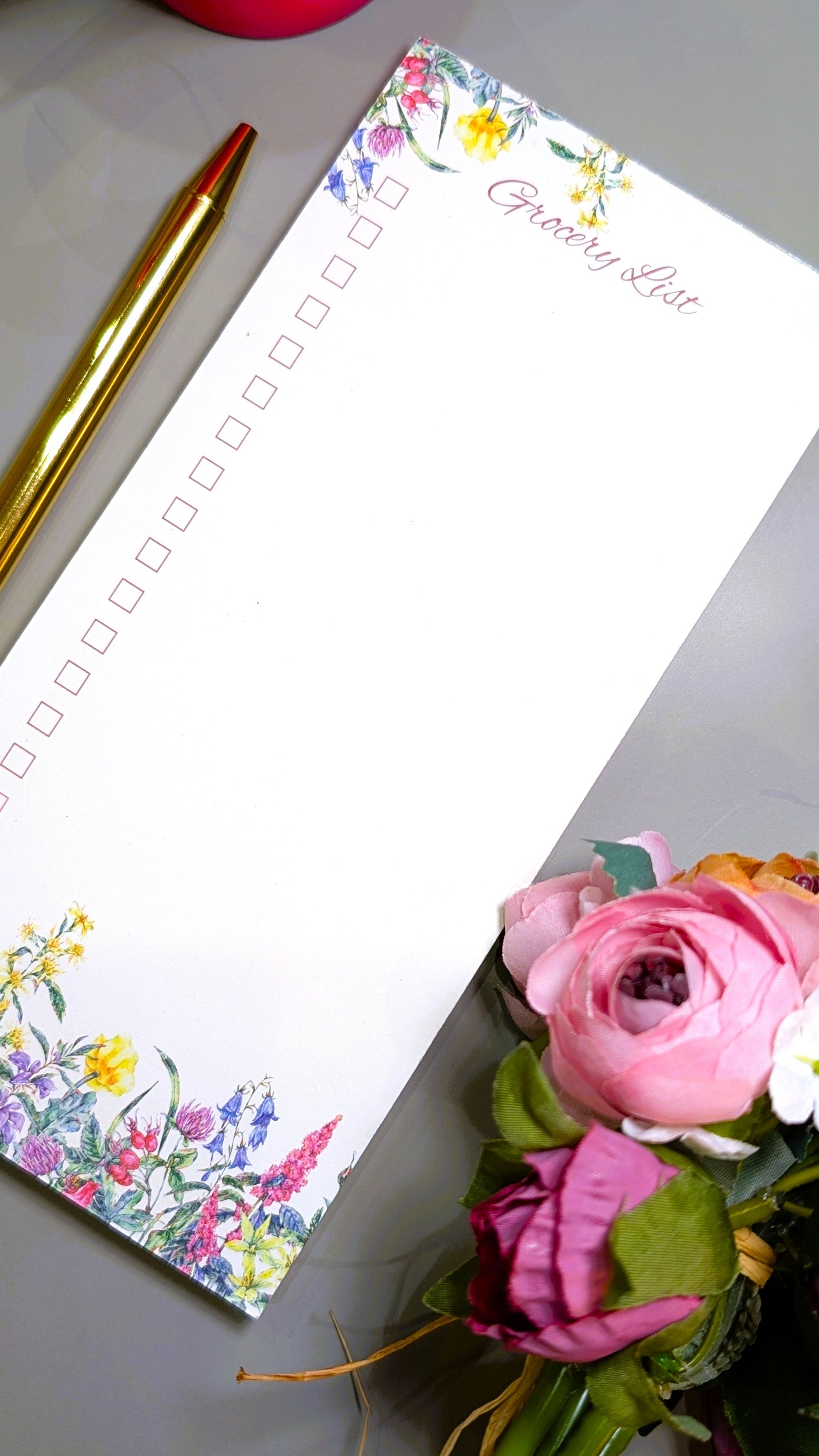 Never have a “Do we need this?” moment in the supermarket aisles again with this delightful grocery list. Save time, save money and shop stress-free, so you have space for more beauty in your life. The magnetic back ensures that the grocery list stays on the refrigerator, right where it is most needed.