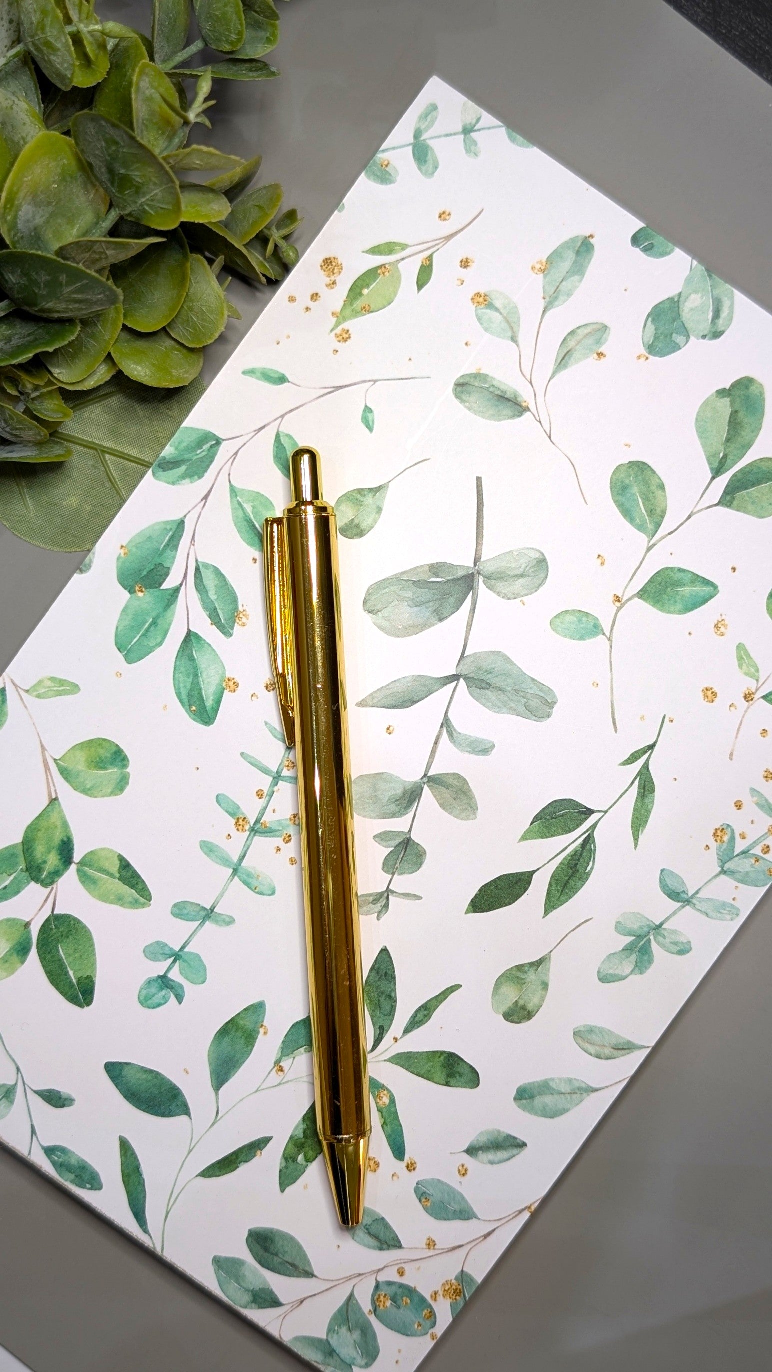 Inspired by fresh greenery and the elegance of nature, the Gilded Green Notepad features a heavyweight cover adorned with graceful leaf illustrations highlighted with fine gold detailing. The 50 sheets have been glue-bound for convenient tear off. This exquisite piece has been further embellished by gilded edges for a touch of quiet luxury.