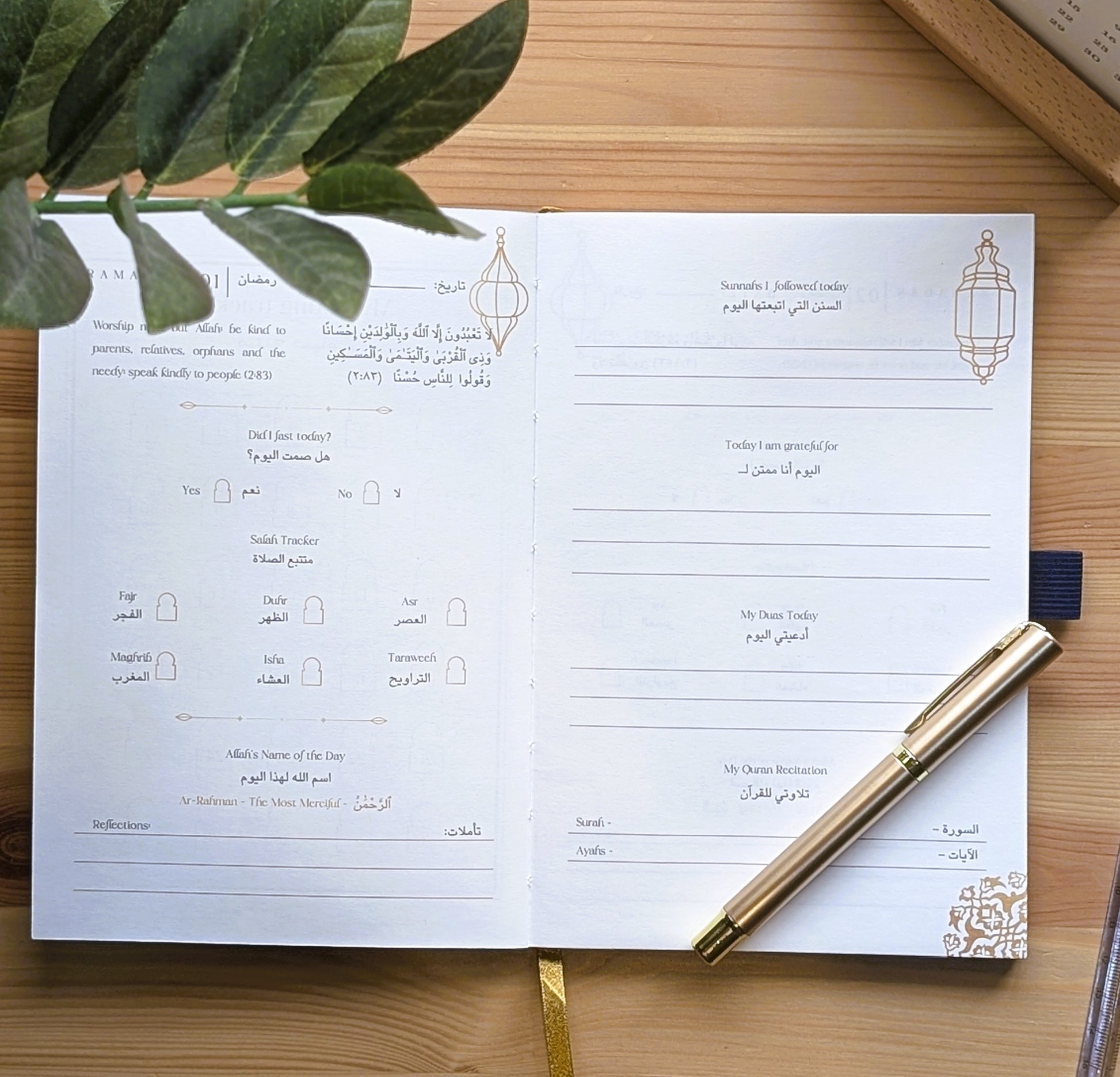 Created to being intention to every fast, our Ramadan Journal guides you through daily moments of reflection, gratitude and dua. Thoughtfully designed in two languages ((English & Arabic), it helps you stay mindful of the higher purpose of fasting and connect more deeply with the spirit of this holy month.